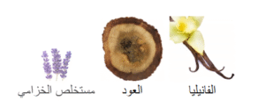 مكونات العطر: الفانيليا والعود ومستخلص الخزامى
