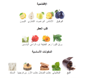 إفتتاحية العطر البرقوق, الأناناس, البرغموت, الكمثري و الليمون; قلب العطر ورق اللورا, زهر القطيفة, إبره الراعي و الياسمين; قاعدة العطر تتكون من التبغ, الباتشولي, خشب الصندل, خشب الأرز من فرجينيا و المسك.