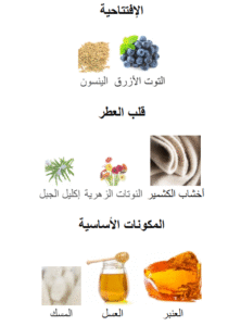 عطر شرقي للجنسين. إفتتاحية العطر التوت الأزرق و الينسون; قلب العطر أخشاب الكشمير, النوتات الزهرية و إكليل الجبل; قاعدة العطر تتكون من العنبر, العسل و المسك.