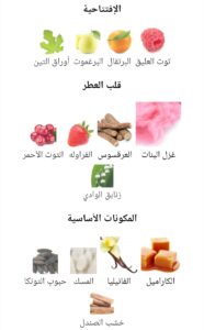 قلب العطر غزل البنات, العرقسوس, الفراوله, التوت الأحمر و زنابق الوادي;